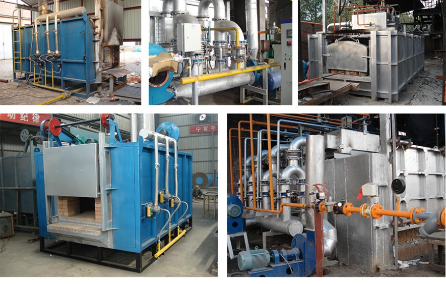 天然氣鍛造爐設計要考慮下列因素:(l)內環滬墻受熱膨脹后,將要向爐內方向傾斜,因此內環墻要采取固定措施;(2)拱頂三角縫過大會降低爐頂強度,因此拱頂砌筑結構要減小三角縫;(3)固定爐墻與環形滬底之間的縫隙,由于環形爐底受熱后向外膨脹,因此外環縫隙要比內環縫隙大;(4)爐墻與爐底之間的縫隙采重油作燃料。用水封密封,水封槽底要向爐外方向傾斜,使落入槽中臺車式鍛造爐爐膛尺寸,一般高度可安裝料高度的雜物自然集中到水槽外側,便于清除。
