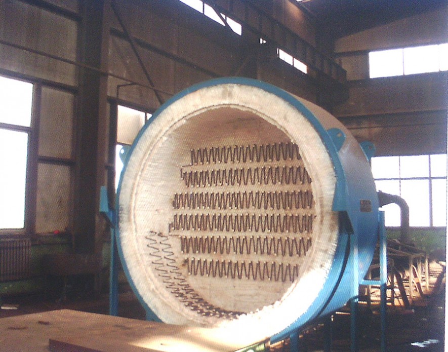 管束封頭熱處理爐是指供爐料熱處理加熱用的電爐或燃料爐。常用的熱處理爐有箱式電阻爐、井式電阻爐、氣體滲碳爐和鹽浴爐等。通常使用連續式爐,工件從加料門連續裝入,通過爐膛,從出料門連續卸出。一般常用的爐內傳送方式是,將工件載于耐熱鋼導軌上,以步進式移動梁或推桿移送。近年來, 逐漸采用耐熱鋼制輸送帶運料的方式。這樣一來,熱處理操作更加合理化,大大增加了熱處理過程自動化和無人管理的可能性。